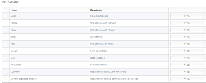 Built-in validations can be applied to created metadata fields, ensuring data accuracy by enforcing specific formats, such as email validation or date validation.