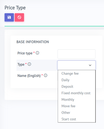 When COS BE is delivered, the basic price types are already created; Operators have the possibility to edit and create new price types.