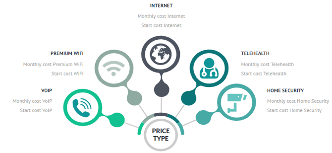 Price Types define how Services (end customer services) and Fees (wholesale costs) are priced. An example of a price type is a ‘one-time cost’ and ‘monthly cost.’ The price types control how the Services will be presented for the end customer. For a certain service definition (i.e., Internet) the Operator can specify that the Service provider must enter information for the price types (i.e., ‘Monthly cost’ and ‘Start cost’). The purpose is to promote free competition on equal terms in the network (in case of Open Access).