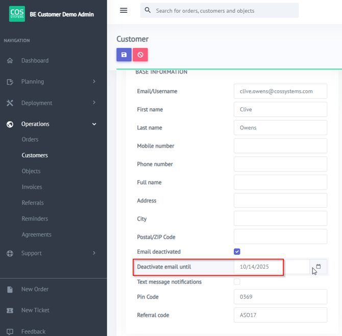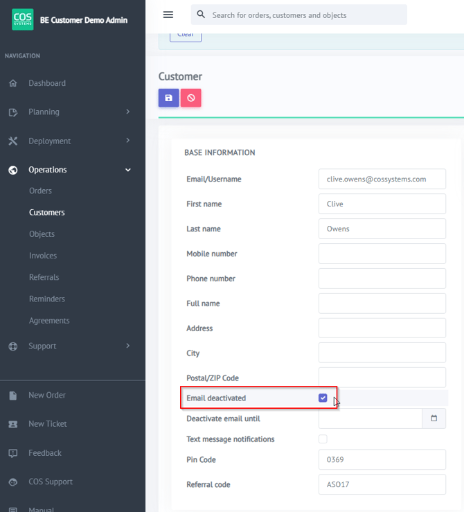 Once updated, the customer will no longer receive automated emails based on your selection. You can re-enable communication at any time by revisiting these settings.
