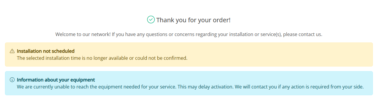 If the selected timeslot is full when using COS FSM, a message is shown directly after order completion. Read more about how to find these orders in Admin here. -
