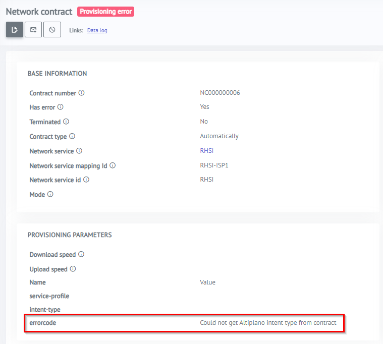 - Once you are in the Network Contract page, look for the section Provisioning Parameters. The field errorcode will display an error message.